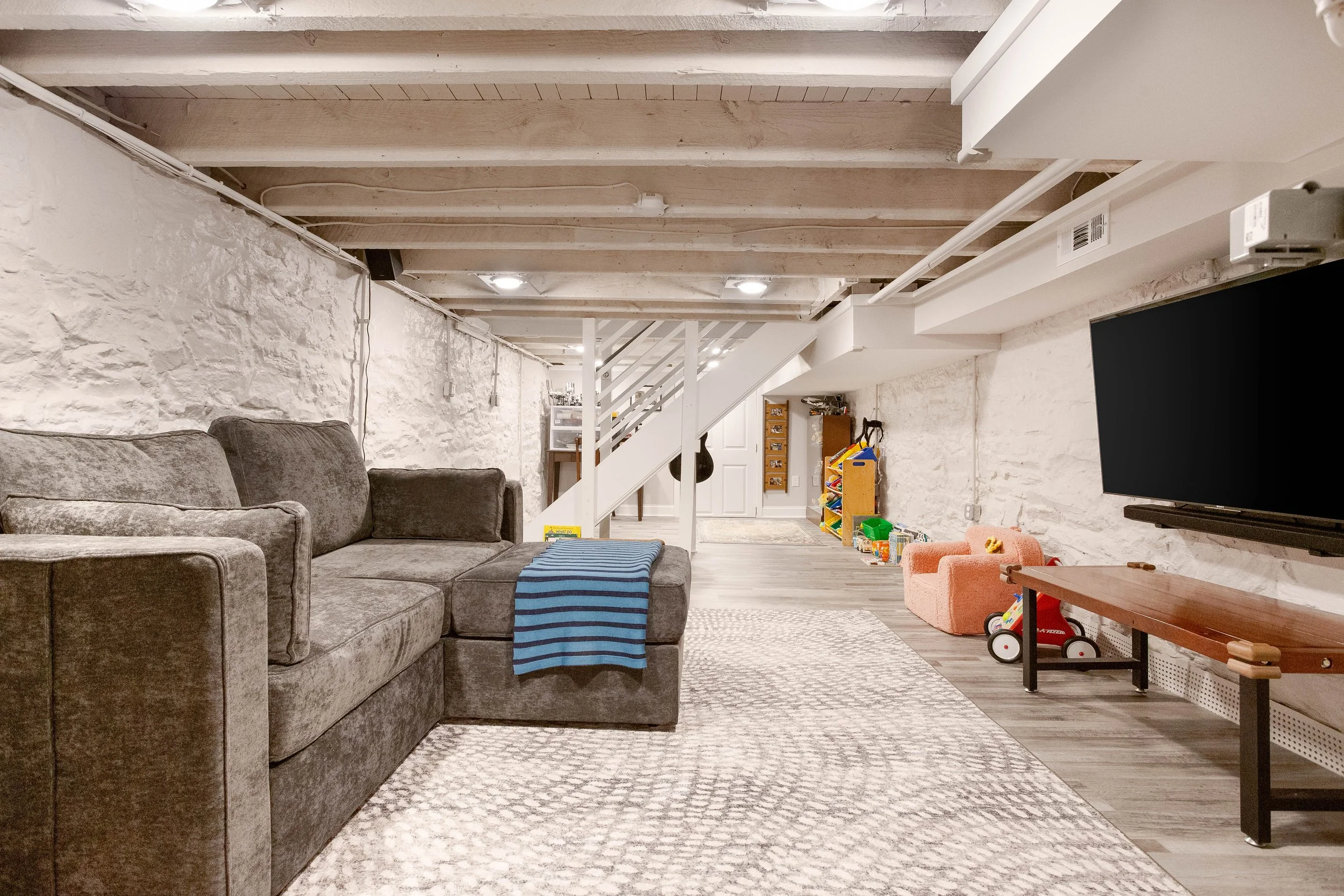 Create a rec room, office, gym, laundry room, closets and utility rooms.